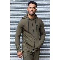 Enzo Men's Regular Fit Zip Up Hoodie in Khaki | Size: Large