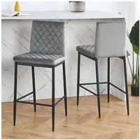 This bar stool perfectly combines fashionable design with practical functions, making it an ideal embellishment for home spaces. Every detail, from comfort to durability, has been carefully considered. The high-quality velvet seat is soft and skin-friendly, while the diamond-quilted pattern adds texture and visual appeal. With an ergonomic design, it provides optimal support even during prolonged sitting, effectively reducing fatigue and the risk of back pain. Sturdy iron tube legs with a black spray coating provide rust resistance and strong load-bearing capacity. Perfect for home bars or dining areas, it adds a touch of elegance to the space while providing lasting comfort. | Living and Home 2 Pieces Upholstered Grey Bar Stools - Manufacturers part number: Living and Home_0000736594316