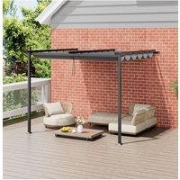 Transform your space with our lean-to pergola, perfect for outdoor dining and relaxation. Its spacious design ensures that you and your guests can comfortably congregate without feeling cramped. The frame, made of robust metal with surface powder coating, extends its lifespan. It is topped with PA-coated polyester fabric, offering effective UV protection for a comfortable shaded area. Moreover, specially designed trellis at the top makes it an ideal spot for climbing plants to thrive, adding a touch of natural greenery. Features: The ventilation design provides optimal airflow and comfort. Multiple drainage holes at the top to prevent water accumulation. The retractable canopy allows adjusting the shade angle for optimal sun protection. It comes with ground stakes to securely anchor it to the ground. It includes complete instructions and accessories for easy installation. | Living and Home 10 x 13FT Outdoor Lean To Pergola with Canopy in Dark Grey