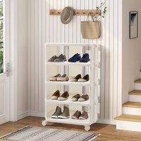 This minimalist shoe rack features five spacious tiers for efficient footwear storage. Its widened panels comfortably accommodate shoes of all sizes, while the tier spacing allows easy access. Made from premium PP material, it offers excellent durability and weight resistance without warping. A central back guard prevents items from slipping off, adding an extra layer of safety. The detachable design ensures hassle-free cleaning and compact storage. Stylish yet practical, it fits perfectly in entryways, living rooms, or officescomplementing any dcor with ease. | Living and Home 5-Tier Rolling Shoe Rack Storage Cabinet in Cream - Manufacturers part number: Living and Home_0000736604381