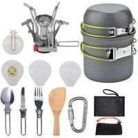 Conquer the wilderness without sacrificing a hot meal! It includes everything you need for cooking, from pots and utensils to the stove, all packed neatly into a compact storage bag for easy transport. Prepare sizzling breakfasts on a mountainside, simmer hearty stews under the stars, or brew coffee at dawn with effortless ease. Each item in the set is easy to clean after use, helping you maintain a hassle-free outdoor cooking experience. Designed with durability and practicality in mind, this set is pe...