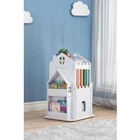Discover this enchanting castle-shaped bookshelf, which decorates their room and creates a fun learning space. With its five-tier design, it easily accommodates picture books, toys, or green plants, encouraging children to organise items by category. The specially designed 365-degree rotating enlarged base ensures easy and quick access from any angle, offering stability without wobbling. Moreover, creating a reading nook with this bookshelf boosts the reading skills of children and imagination while strengthening the parent-child bond. It serves as both a treasure trove of knowledge and a display for toys or storage for accessories, creating a space where learning and play come together harmoniously. | Living and Home 3-Tier Castle Rotating Bookshelf Storage Rack Organiser in White - Manufacturers part number: Living and Home_0000736605791