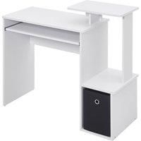 This compact computer desk features a slide-out keyboard tray, a non-woven drawer, and a raised desktop shelf. A side shelf provides extra storage, helping keep your workspace tidy. Made from E1 particle board, it is easy to clean and suitable for everyday use. | Versatile Computer Table with Storage Shelf & Keyboard Tray in White