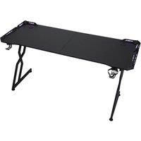 This gaming desk is ideal for both gaming and work, blending comfort with practicality. Featuring a modern black design, it is an elegant addition to any home office or gaming setup. The spacious desktop offers ample room to easily accommodate a computer, mouse, and keyboard. Made of smooth-surfaced particleboard, it is easy to clean, while the robust steel frame provides excellent load-bearing capacity, supporting up to 75 kilograms. Equipped with a headphone hook and a cupholder, it enhances convenien... - Manufacturers part number: Living and Home_0000736621081