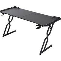 This gaming desk is ideal for both gaming and work, blending comfort with practicality. Featuring a modern black design, it is an elegant addition to any home office or gaming setup. The spacious desktop offers ample room to easily accommodate a computer, mouse, and keyboard. Made of smooth-surfaced particleboard, it is easy to clean, while the robust steel frame provides excellent load-bearing capacity, supporting up to 75 kilograms. Equipped with a headphone hook and a cupholder, it enhances convenien... - Manufacturers part number: Living and Home_0000736621241