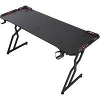 This gaming desk is ideal for both gaming and work, blending comfort with practicality. Featuring a modern black design, it is an elegant addition to any home office or gaming setup. The spacious desktop offers ample room to easily accommodate a computer, mouse, and keyboard. Made of smooth-surfaced particleboard, it is easy to clean, while the robust steel frame provides excellent load-bearing capacity, supporting up to 75 kilograms. Equipped with a headphone hook and a cupholder, it enhances convenien... - Manufacturers part number: Living and Home_0000736621258