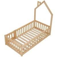 This floor bed frame blends practicality with fun, offering a safe and cosy space for your child. Its natural wood finish preserves the authentic grain, offering a warm sleeping atmosphere. The headboard features a charming roof design with a playful "chimney" detail, sparking the curiosity of your child. The elevated guardrail ensures safety by preventing little ones from rolling off during sleep. A sturdy base board provides even pressure distribution, offering solid support for the mattress. More t...
