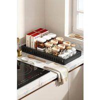 The storage rack is made of upgraded materials, is corrosion-resistant, wear-resistant, durable and has a long service life. You can install this organizer in 3 minutes without any tools. This cookware storage rack is made of heavy-duty iron, painted in black, not easy to deform, and detachable, saving kitchen space. | Living and Home Pull-out Cabinet Storage Rack Spice Rack Kitchen Drawer Organiser Holder Shelf in Black - Manufacturers part number: Living and Home_0000810422030