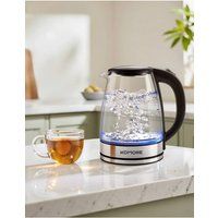 This kettle combines efficient heating performance with safety design, making it an ideal choice for home or office use. Equipped with a powerful 1500W heating element, it quickly brings water to a boil, saving waiting time. Featuring a large 1.8L capacity, it can meet the drinking needs of multiple people at once. The transparent design allows for easy monitoring of the water level and boiling status, ensuring peace of mind during use. The base supports 360-degree rotation, allowing the kettle to be picked up from any angle, providing greater flexibility in use. Additionally, safety features include automatic power-off when boiling, boil-dry protection, and a locking lid for complete peace of mind. | Living and Home Fast Boil 1.8L Electric Kettle w/ Auto Shut-Off Boil-Dry Protection in Clear - Manufacturers part number: Living and Home_0000810423037