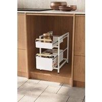 Built for stability, refined for daily use. Made from heavy-duty carbon steel, this storage organiser ensures exceptional load-bearing strength and long-lasting durability, even in demanding spaces. Its corrosion- and oil-resistant finish keeps it resilient in damp or greasy conditions. Dual pull-out tiers maximise vertical space, neatly storing bottles, cleaners, and essentials within easy reach. Raised side rails keep items secure, adding confidence with every use. Perfectly sized for under-sink areas, cabinets, or bathroom corners, it creates lasting order and efficiency in even the most crowded spaces. | Living and Home 2-tier Kitchen Pull-Out Storage Drawer Basket Organiser Spice Rack in White - Manufacturers part number: Living and Home_0000810423303