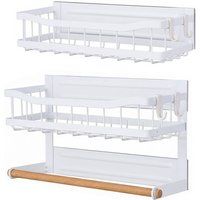 Upgrade your kitchen organisation with this practical 2-piece magnetic fridge organiser set! Featuring a drill-free design, these shelves attach securely to your fridge door, instantly creating ample storage. Perfect for neatly arranging condiments, food bags, and utensils, they keep your kitchen clutter-free. The handy bar below is ideal for hanging towels, and additional hooks offer flexible storage for frequently used items, ensuring everything is within easy reach. This set is the perfect solution for efficient, modern kitchen storage, bringing order and convenience to your cooking space. | Living and Home 2-Piece Magnetic Fridge Storage Shelf Spice Rack Organiser Set in White | Size: 2 Pack - Manufacturers part number: Living and Home_0000810423488