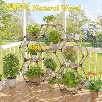 This eucalyptus wood plant stand is sturdy and durable, with a robust and reliable wooden structure sufficient for everyday use. It features six tiers, providing ample space for your favorite plants. Each tier uses a slatted design, and the staggered layout ensures good lighting and ventilation throughout the stand. The honeycomb hexagonal design adds a touch of sophistication to your home, balcony, or yard. | Living and Home 6-tier Hexagonal Wooden Plant Stand Honeycomb Flower Potted Rack Decorative Display Shelf in Brown - Manufacturers part number: Living and Home_0000810425086