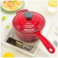 Discover a healthier cooking option with premium cast iron pan. This high-quality cast iron pot is robust and durable, with a thick bottom for even heat distribution, enhancing cooking efficiency. It also has a raised edge, effectively preventing oil and ingredients from spilling during cooking, maintaining kitchen cleanliness. Whether you are stir-frying, simmering, or reheating vegetables, sauces, or soups, this skillet is an ideal choice for healthy cooking. | Living and Home Enamel Cast Iron Pot Cookware with Lid & Handle in Red - Manufacturers part number: Living and Home_0000810425574