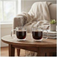 Crafted with care for everyday moments. Made from non-toxic borosilicate glass, these double-walled coffee cups are designed to withstand rapid temperature changes and built for lasting daily use. The insulating double layer keeps the exterior cool to the touch, while the sturdy handle ensures a secure, comfortable grip. Each set includes two cups with a practical capacityperfect for floral tea, black tea, coffee, juice, or milk. With a minimalist design and thoughtful details, they blend functionality with quiet elegance, bringing warmth and calm to moments at home or in the office. | Living and Home 2-Pack 2-Walled 300/350ML Borosilicate Glass Coffee Cups with Handle in Clear | Size: Large - Manufacturers part number: Living and Home_0000810425840
