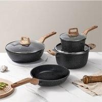 This 7-piece cookware set is a versatile and essential addition to any kitchen, designed to meet a wide range of cooking needs. The set includes a saut pan, a casserole, a small saucepan, and a frying pan, offering a well-thought-out structure and comprehensive functionality. Each piece is crafted with a high-quality non-stick coating that ensures not only durability but also easy cooking and effortless cleaning, significantly enhancing the overall user experience. With broad compatibility, the set is suitable for both induction and gas hobs, and it provides even heat distribution for consistently excellent results. Whether you are stir-frying, pan-frying, or simmering, this cookware set performs each task with ease, helping you prepare delicious meals effortlessly every time. | Living and Home 7 Pieces Nonstick Cookware Set in Grey | Size: 8 Pack - Manufacturers part number: Living and Home_0000810426045