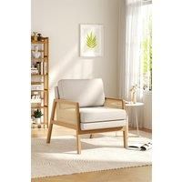 Here comes an inviting and stylish seat from H&O Direct that will look great in living rooms, bedrooms or any area of the home that needs an extra touch of comfort. The wooden frame of this armchair features exquisite rattan work on the sides, giving it a warm touch that also adds to its rustic appeal. Better still, this armchair is created in a way that promises comfort. From its deep cushioning, soft upholstery to the wood armrests, you will appreciate the coziness it offers.