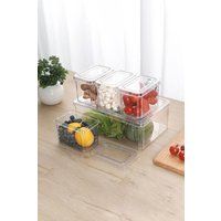 This refrigerator storage box is made of good plastic material, which can directly contact and store food, and does not contain harmful substances such as BPA. Keep your food in a fresh and healthy state. (Note: Cannot be washed in the dishwasher) The cover of the storage box is sealed, which prevents air from entering, thereby locking the moisture of the food, keeping the ingredients fresh, and prevent dust from entering. Provides 5 different sizes (size reference picture,) to help you create storage in the compact space on the refrigerator shelf. | Living and Home 5 PCS Clear Plastic Fridge Organiser Storage with Lids - Manufacturers part number: Living and Home_0033616658600