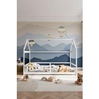 Create a happy and comfortable space for your child, made of high-quality natural pine wood with a sturdy structure that can withstand the weight and play activities of children. With a suitable mattress, children can play independently for long periods of time and easily transition to rest when needed. This bed has a cute triangular roof design that attracts children's attention and makes it an enticing addition to their room. | Living and Home White Kid's Pine Wood House Bed