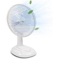 The hot summer would be difficult to get through without this Livingandhome mini table fan. Compact in size and perfect for desk or dresser placement, this table fan excels at circulating air. While lacking oscillation, it efficiently generates powerful winds. Its small footprint, complemented by a convenient handle at the back, allows for effortless room-to-room portability. You can easily control the wind speed with a knob, and the tilt angle is adjustable for personalized comfort. Overall, this fan is a versatile solution to meet your daily ventilation and cooling requirements. | Living and Home 6 inch Mini Table Fan, 15W, White