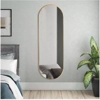Add a touch of glamour to your home with this stunning oval full length mirror. Featuring a sleek and sturdy metal frame in a luxurious gold finish, this mirror is both functional and stylish. Measuring 150cm in height and 50cm in width, it is the perfect size for checking your outfit from head to toe. Hang it in your bedroom, dressing room, or hallway to create a focal point and enhance the decor of any space. | H&O Direct Gold Oval Wall Mounted Full Length Mirror Bedroom Wall Mirror, 50cm W x 150cm H ...
