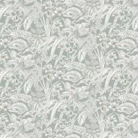 An etching style drawing of overlapping orchids plants. Shown here in the Duck Egg Green colourway with tiny metallic gold detailing on the flowers. - Manufacturers part number: York_RT7882