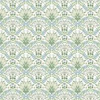 An intricate mirrored floral pattern with distinct Art Nouveau influences. Delicate abstract flowers introduce an element of whimsy to contemporary interiors. Shown here in the blue and green colourway, with small metallic gold details. Wide-width design, with a shorter than standard roll length. - Manufacturers part number: Rifle Paper Co._RP7323
