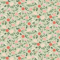 A sweet digital print design with roses and berries. Shown here in shades of orange and pink on a mint green background. Wide-width design, with a shorter than standard roll length. - Manufacturers part number: Rifle Paper Co._RF7545