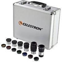 Celestron Eyepiece and Filter Kit - 1.25" The Celestron 1.25" Eyepiece and Filter Kit is a great way to expand the functionality and enjoyment of your telescope. Inside the metal, foam-lined carry case you'll find five Plossl eyepieces, a Barlow lens & seven filters. Changing out an eyepiece on your telescope will alter the magnification. Using filters will bring out more detail, especially on Planets such as Mars & Jupiter. The Moon filter allows you to see more detail on a full Moon - by diming dow... - Manufacturers part number: 94303-CGL