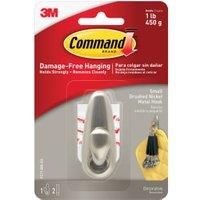Command Brushed Nickel Small Metal Hook has a classic finish to match your decor. They hold strongly on a variety of surfaces including paint wood tile and more. Yet they also come off cleanly. Holds weight of up to 1.3kg.