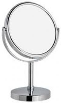 A finely crafted beauty mirror, great for making your beauty regime easy. Providing 1x and 5x magnification options to help you see every detail of your hair and makeup, this mirror with chrome finish is in a pedestal style to allow free movement to suit your needs. X1 magnification is ideal for observing the whole face while X5 is perfect for makeup application. Double sided mirror, 1 side 5x magnification. Made from chrome effect. Size H24.5, W16, D10cm. Diameter 14.5cm. Product weight 582g. Manufactu...