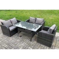 Weather-Resistant Rattan: Designed to withstand the elements, ensuring longevity. Comfortable Seating: Includes plush cushions with removable, washable covers. Spacious Design: Accommodates up to five people with ease. Stylish Dining Table: Features a sleek tempered-glass top for an elegant touch. Easy Assembly: Arrives flat packed for a quick setup in just 1-2 hours.