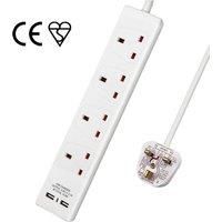 This Livingandhome outlet extender transforms a single outlet into a versatile four-outlet hub, providing the additional power points exactly where you need them. Equipped with 4 outlets and 2 USB ports, this extension cord provides a designated spot where you get to charge your electronics and phones. This outlet extender is also equipped with a 3m cord, which allows you to establish a centralized power hub for all your equipment flexibly. | Living and Home Outlet Extender with 3M Cable, 2 USB Ports and 4 Outlets in White