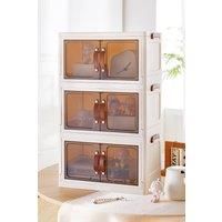 This storage box is ideal for meeting a variety of your storage needs. It adopts a three-layer design and provides multiple compartments to facilitate classification and storage of items, making space utilization more efficient and helping the home stay tidy at all times. The flexible double-door design not only facilitates access to items, but also effectively prevents dust and keeps the interior clean. Whether it is daily necessities, books, or stationery, they can all be easily stored to meet your diverse needs. | Living and Home 3 Tier Double-Door Desk Organizer Storage Box Multifunctional Cosmetic Storage Cabinet in Brown - Manufacturers part number: Living and Home_0073553119215