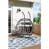 Enjoy the great outdoors with your loved ones using this Hanging 2-Seater Chair! Made from rust-resistant powder-coated steel, the chair is resistant to daily wear and is resilient. The plush cushions provide impeccable support and unparalleled comfort. Its spacious seating area is perfect for 2 people to spend pleasant leisure time together. | Garden Sanctuary 2-Seater Outdoor Hanging Egg-Shaped Chair in Black