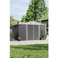 This metal storage shed is made of high-quality steel plates and treated with an anti-rust coating to ensure durability. It is corrosion-resistant and suitable for all weather conditions, so it requires little maintenance. It provides ample space for your outdoor items while providing reliable protection from UV rays, wind and rain. In addition, it is equipped with ventilation shutters to promote air circulation inside. | Garden Sanctuary 1012 FT Outdoor Lockable Steel Storage Shed with Door in Grey