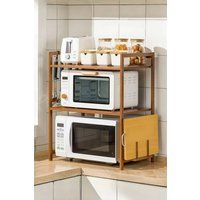 Enhance your kitchen space with this high-quality wooden rack that retains a natural wood texture, exuding natural charm. Designed to fit completely against the wall, it prevents seasoning bottles, tools, and tableware from falling through gaps. The stable base ensures robust load-bearing capacity, making it a practical and stylish addition to any kitchen. | Living and Home 3-Tier Wooden Spice Rack Organizer Microwave Oven Rack with Hooks & Chopping Board Holder Kitchen Organizer Storage Shelf in Natural - Manufacturers part number: Living and Home_0073768292857