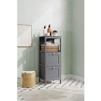 Keep limited spaces tidy with this compact storage cabinet. It comes with a shelf and two drawers, perfect for storing toiletries, dry towels, tissues, and all bathroom essentials. With a matte finish and minimalist design, this cabinet is made of E1-grade environmentally friendly sheet material and coated with waterproof paint, allowing for long-term use even in humid spaces. | H&O Direct Wooden Compact Bathroom Cabinet with Drawers in Grey
