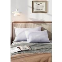 A properly chosen pillow can effectively reduce the pressure on your neck and shoulder. Our pillow insert, made with polyester fabric and filled with polyester fibre, offers excellent support and comfort. Additionally, its superior wrinkle resistance contributes to its durability and easy maintenance. Moreover, it helps maintain the natural curve of the spine, providing you with all-night comfort whether you sleep on your side, back, or stomach. And you will feel refreshed upon waking and reducing the pain and discomfort caused by improper sleeping positions. | Living and Home 2 Pieces Washable Stripe Bed Pillows Comfortable Medium Firm Support Pillows, 74cm L x 48cm W in White - Manufacturers part number: Living and Home_0073768349100