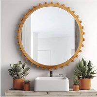 Enjoy clear, crisp reflections with the high-definition Wall Mounted Mirror. The mirror features a frame crafted from high-quality pine wood, which is known for excellent durability and natural beauty. The addition of round wooden beads around the frame adds a distinctive and rustic touch, making this mirror a standout piece in any room. Boasting a copper-free mirror, this piece is less prone to corrosion and oxidation, allowing the beauty of the mirror to last.