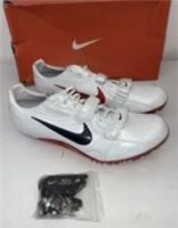 The Nike Zoom Superfly R2 White Men’s UK14 / EU 49.5 running shoes are designed for track and field athletes, specifically featuring spikes for enhanced traction on the field. The sleek white design and spike style make them both stylish and functional for running and jogging activities. This model from the Nike Spike product line offers a comfortable fit and superior performance, making it a great choice for men looking to enhance their running experience. There is a dirty mark on one of the shoes and ...