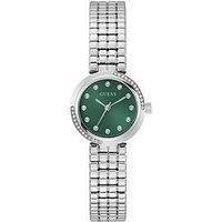 GUESS stainless steel Ladies watch with green crystal detail dial and stainless steel bracelet GUESS stainless steel Ladies watch with green crystal detail dial and stainless steel bracelet 24Hr Display: N Depth: 8.05 MM Height: 28 MM Width: 28 MM Case Diameter (in cm): 2.8 Case height (in cm): 2.8 Case Length (in cm): 2.8 Case Shape: Round Case Width (in cm): 2.8 Movement: Japanese Quartz (battery) Strap Material: Stainless Steel Water Resistant: Y