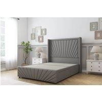Premium Platform-Top Construction Built on a platform-top base for consistent, even support, Rutherford offers a stable foundation and a clean, modern silhouette. Chrome gliders protect floors and make repositioning easy. Each frame is handcrafted in the UK for long-lasting durability. Headboard Design 54" Standard A 54-inch floor-standing headboard is included, featuring a striking sunburst pattern with winged sides for a bold, luxurious focal point. Fabric & Finish Options Choose from Sloomys fabrics...