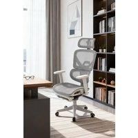 Transform your workspace with comfort and style, thanks to this modern office chair. Crafted with breathable mesh fabric from backrest to seat, it offers continuous ventilation, keeping you cool and comfortable throughout long hours. An adaptive lumbar support system automatically aligns with your lower back, providing essential relief from pressure. The height-adjustable armrests provide natural and ergonomic support for your arms, helping to reduce strain during long use. With a tilt mechanism that reclines up to 135, a foldable footrest, and a headrest, it allows you to switch from productive sitting to a relaxing rest mode with ease. Featuring a sleek, minimalist design and a professional colour scheme, this chair enhances the aesthetic of any office, home study, or gaming space. | Living and Home Height Adjustable Swivel Office Chair with Casters in Grey - Manufacturers part number: Living and Home_0099641351336