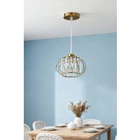This pendant light blends modern and luxurious elements, making it perfect for enhancing home decor. Featuring gold as the primary colour tone, it exudes an air of nobility and elegance. The lampshade is crafted from multiple metal rings, forming a delicate cage-like structure, complemented by embedded transparent glass that emits a soft glow when lit, adding warmth to any indoor space. Its unique suspension design enhances spatial layering and visual extension effects. It not only illuminates but also decorates, promising to elevate the aesthetic appeal of living rooms, dining areas, or bedrooms, creating an atmosphere that is both sophisticated and inviting. | Living and Home E27 Metal & Glass Lampshade Pendant Light in Gold - Manufacturers part number: Living and Home_0099641390212