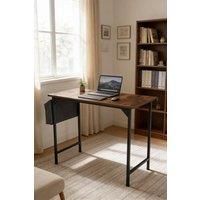 This office desk seamlessly blends modern design with practical functionality to meet a variety of work needs. Its vintage finish adds a touch of natural warmth to your workspace. The spacious surface provides ample room for your computer, keyboard, and mouse, helping you maintain an organized work area. The thoughtful side storage pocket and hook make it easy to store items such as documents, notebooks, headphones, and bags, maximizing practicality. Thanks to its space-saving design, it serves not only as an office desk but also adapts perfectly as a study table, gaming station, or printer stand. | Living and Home Home Office Desk with Side Storage Pocket and Hook in Brown - Manufacturers part number: Living and Home_0099641394210