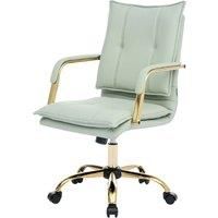 Our office chair perfectly blends modern aesthetics with comfort. The curved backrest and cushioned seat offer exceptional support for your back and waist, ensuring a comfortable sitting posture even during prolonged use. Wrapped in premium PU, it exudes a sense of luxury while being both durable and easy to maintain. With pneumatic height adjustment, you can effortlessly customize it to your preferred level. Whether used as an office chair, vanity stool, bedroom seat, or study chair, it exudes timeless elegance. | Living and Home PU Upholstered Office Chair in Light Green - Manufacturers part number: Living and Home_0099641394708
