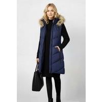 Own this padded gilet that combines fashion and practicality. Boasting a fixed faux-fur hood and a practical stand-up collar, it offers both wind protection and sophisticated flair. Its sleek silhouette, defined by a chic herringbone quilting pattern, ensures comfort without bulk. Designed with a sleeveless cut for effortless layering over jumpers or under heavier sweatshirts. This piece transitions seamlessly from a statement item to an essential wardrobe layer for the style-conscious. | MODISHION Wome...
