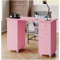 Elevate your nail station with a manicure table designed for efficiency, organisation, and professional comfort. The spacious work surface easily accommodates lamps, trays, polish bottles, and other essentials to keep everything within reach. Four smooth drawers on the right and a cabinet featuring two height-adjustable shelves on the left provide flexible storage for tools of all sizes. Eight smooth castors with a lockable mechanism offer effortless mobility and secure stability during treatments. A reliable, well-organised workspace that enhances both creativity and client experience. | SHEONLY Mobile Manicure Table with Built-in Dust Collector in Pink - Manufacturers part number: SHEONLY_0099641433254