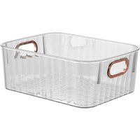 This storage organiser is an ideal solution for maximising small spaces, blending minimalist style with decorative appeal. Its spacious design neatly holds cosmetics, skincare products, toiletries, and small essentials, keeping your surfaces tidy. The high-clarity transparent body lets you see contents at a glance for quick access. Thanks to its smooth surface, cleaning is effortlessjust rinse or wipe with a damp cloth. Whether placed in the living room, vanity, bathroom, or kitchen, it seamlessly fits into any setting, offering clutter-free storage wherever you need it. | SHEONLY Transparent Desktop Storage Organiser in Clear - Manufacturers part number: SHEONLY_0099641434275