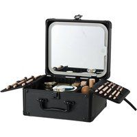 The chic portable makeup case is designed for the woman on the go! It opens up to reveal 6 removable EVA dividers and two dedicated brush boards, allowing you to tailor the layout perfectly. The real star is the built-in HD LED mirror; it is removable and comes with a sturdy stand for hands-free use. With three colour temperature control and stepless dimming, simply charge it in via USB to achieve flawless makeup in any setting. Compact, stylish, and incredibly clever, it is the ultimate organiser and handbag must-have. | SHEONLY Portable Makeup Case with LED Mirror in Black - Manufacturers part number: SHEONLY_0099641434480